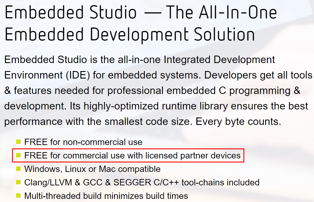 우선 개발 환경을 찾아보니 SEGGER사의 Embedded Studio를 공식 개발 환경으로 하고 있습니다.